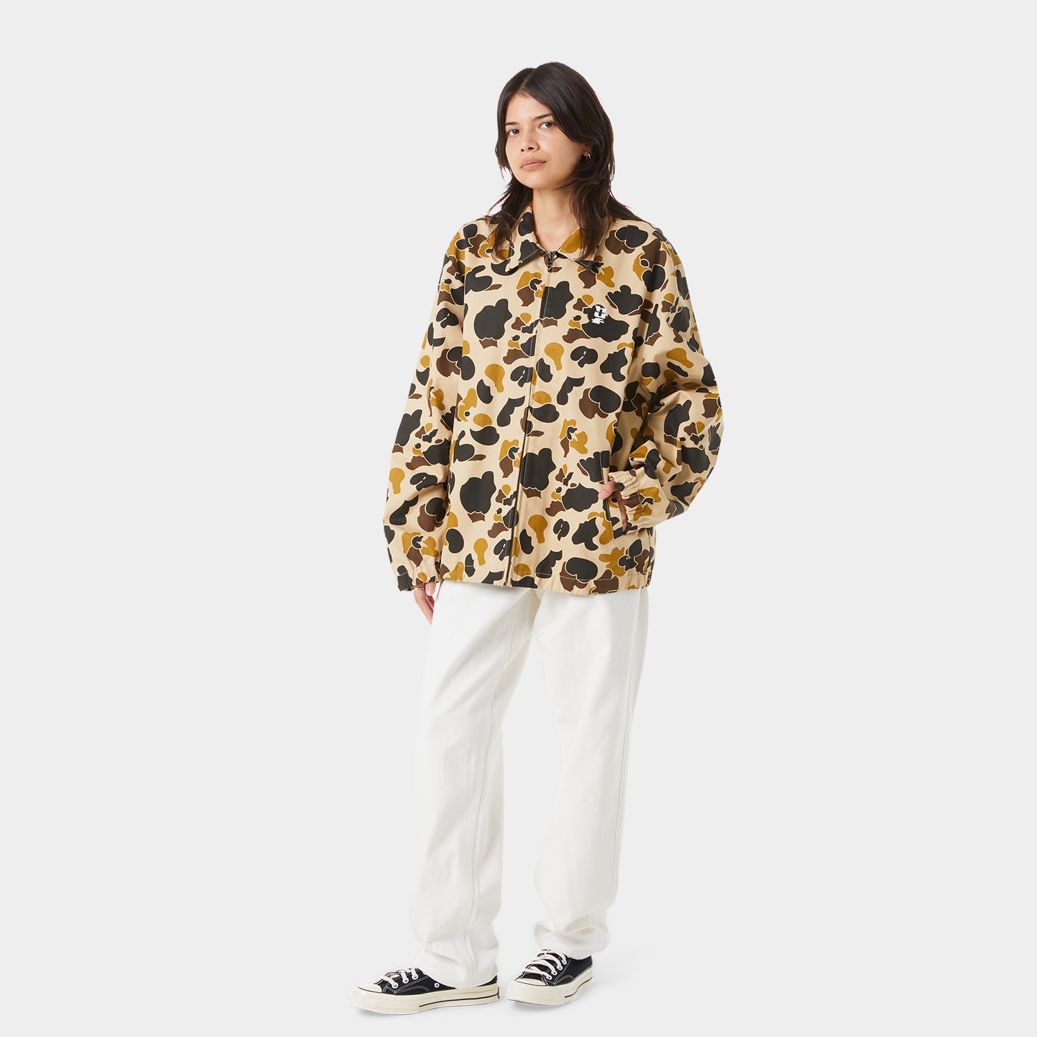 • 100%コットンツイルのカモ柄ショップジャケット